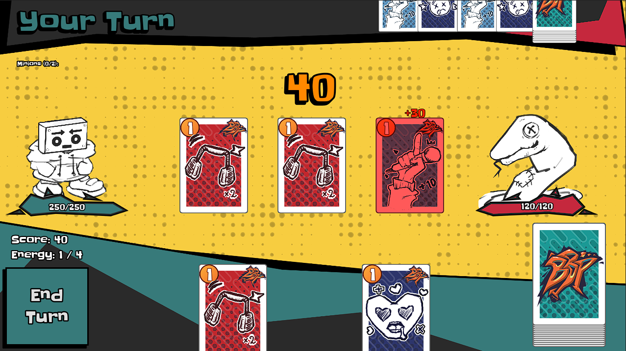 - Enemies of different types have different decks and cards, choose your next opponent based on which cards you want to add to your collection.